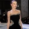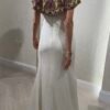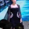 A striking black dress featuring two waist cut-outs framed with silver embroidery for a refined sparkle. Finished with a sheer black shawl to complete the look, it balances bold design with elegant sophistication—perfect for evening events and special occasions.
