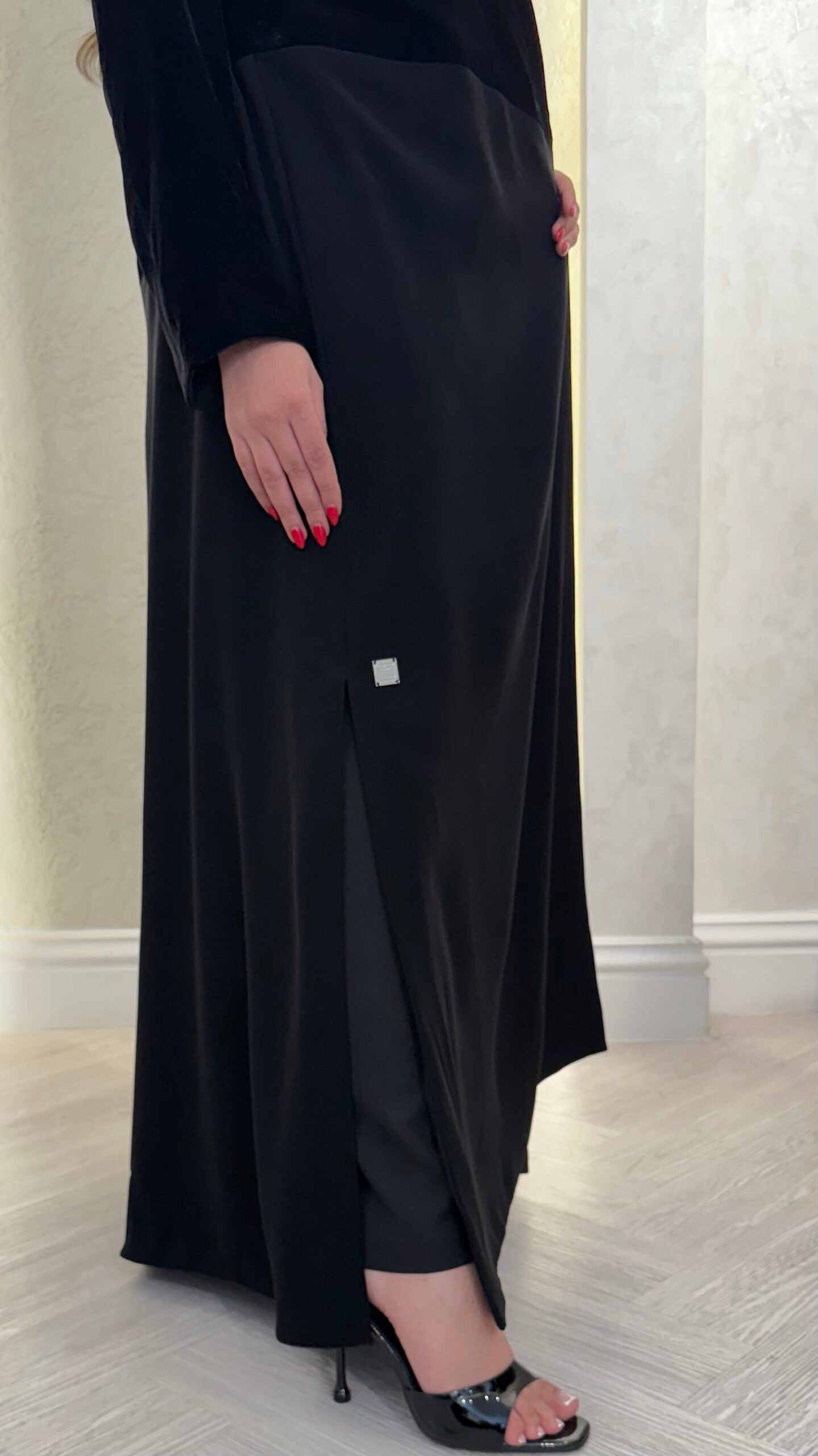 A refined everyday black abaya crafted from two luxurious textures—half rich velvet and half premium abaya fabric. Designed with a clean, elegant silhouette, it blends comfort with a bold, polished finish, making it an effortless go-to from day to night.